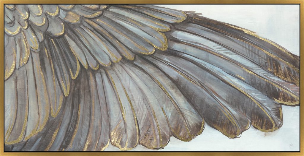 For an interior with personality, a lot of charm and a touch of femininity, we offer you this collage of two paintings painted on canvas. Accessorised with gold leaf, they will give wings to the composition and will be the focal point of the decor. Wings, as a form of interior decoration, are very popular lately, so they could not be missing from our portfolio