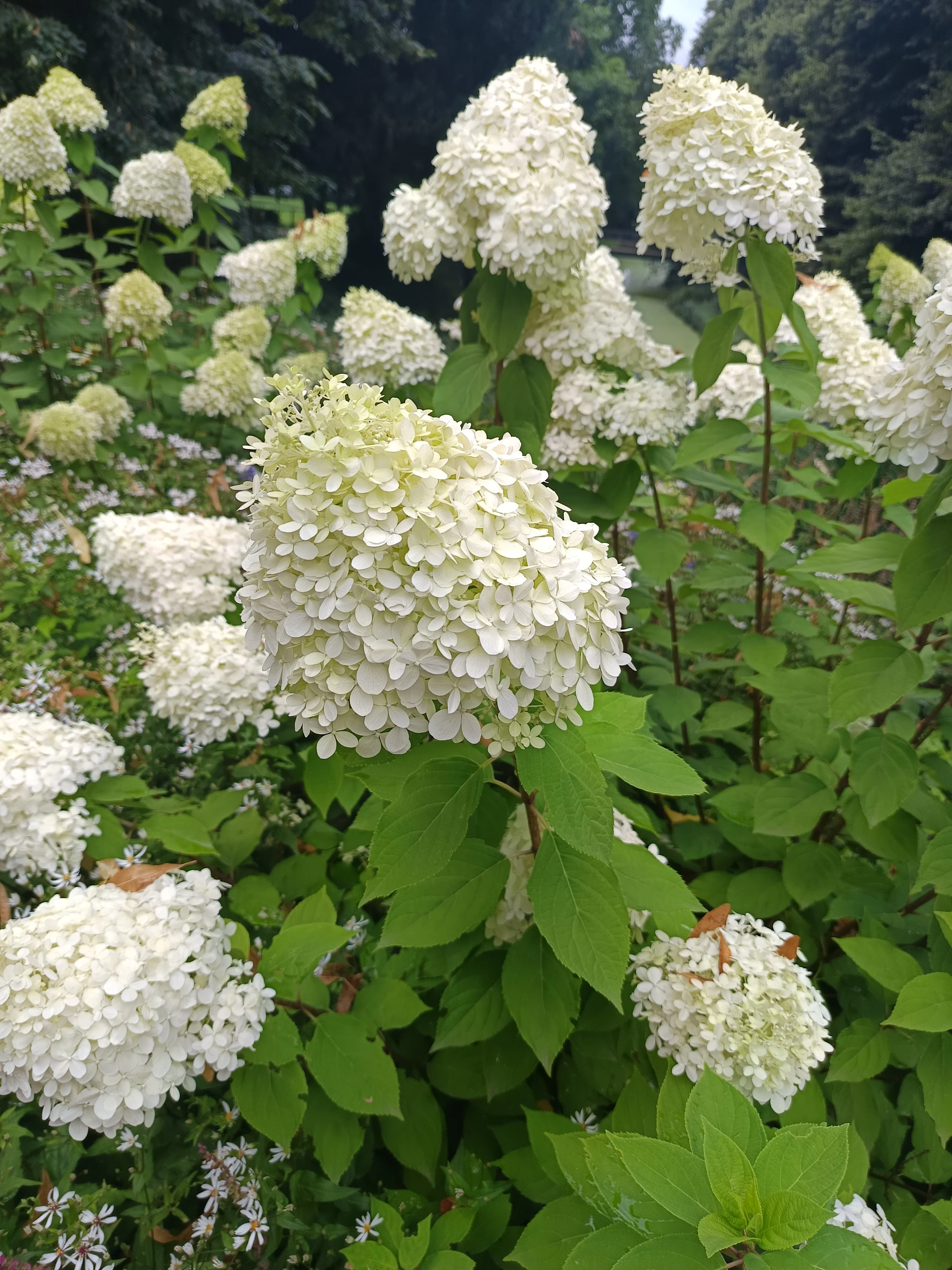 - Panicle hydrangeas (Hydrangea panicala) As ’Limelight', ’Strawberry Vanilla' OR ’Kyushu' they amaze with their cone-shaped flowers, which change from white to pink. They love sunny or partially shaded positions, are very tolerant of pruning and thrive best in humus-rich, slightly acidic but well-drained soil.